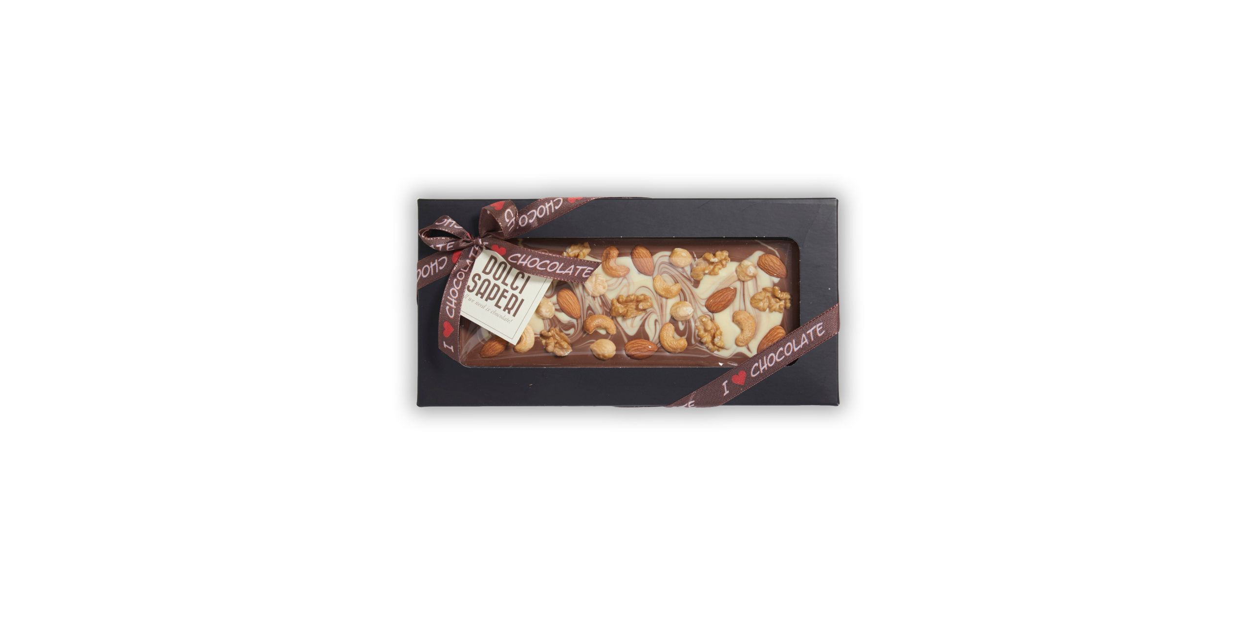 - Cioccolato al latte variegato bianco con frutta secca